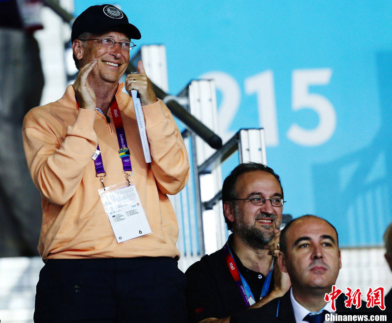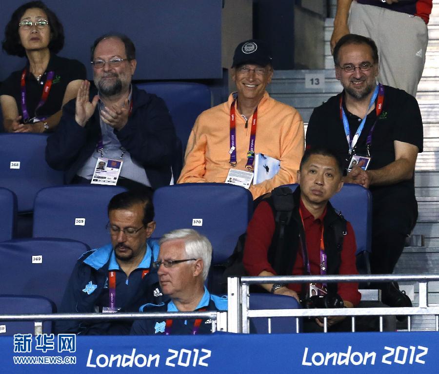 7月29日,比尔·盖茨(后右二)和国际乒联主席沙拉拉(左二)观看中国选手李晓霞和美国乒乓球华裔小将邢延华的比赛。当日,在2012伦敦奥运会乒乓球女单第三轮比赛中,李晓霞以4比2战胜美国乒乓球华裔小将邢延华,顺利晋级。新华社记者 沈伯韩 摄 图片来源:新华网