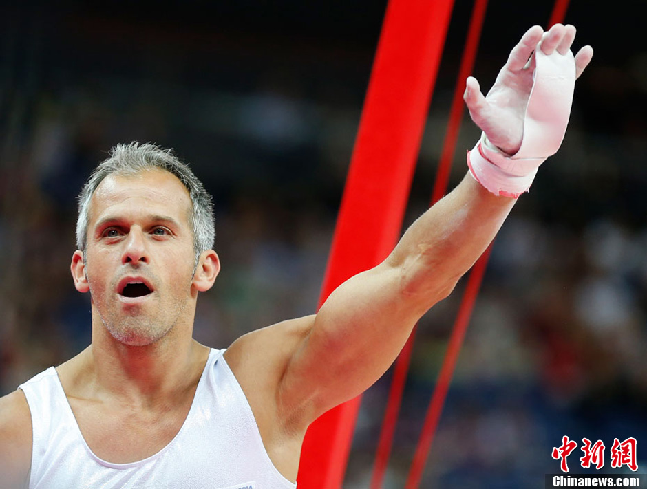 菲利普-博伊,德国体操运动员,1987年7月23日出生,身高172cm,体重66kg,狮子座。作为德国男子体操队绝对主力的菲利普-博伊超强的竞技能力是毋庸置疑的,除此之外,俊秀的面容再加上多年训练造就的健美的身材,绝对可以迷倒众多熟女。图为菲利普·博伊在训练中。记者 盛佳鹏 摄