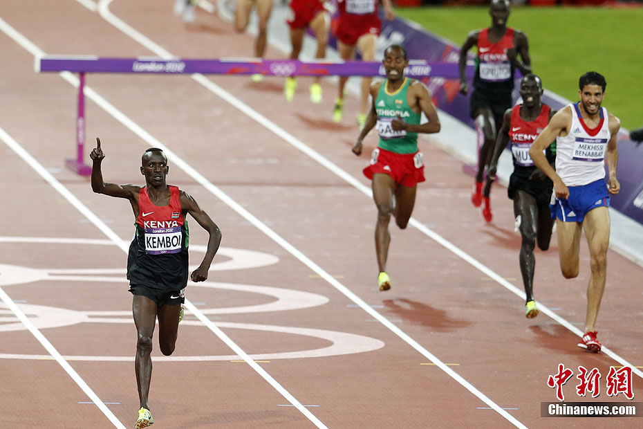 当地时间8月5日,伦敦奥运会女子400米决赛在“伦敦碗”进行,美国选手理查德·罗斯(中)夺金。记者 盛佳鹏 摄