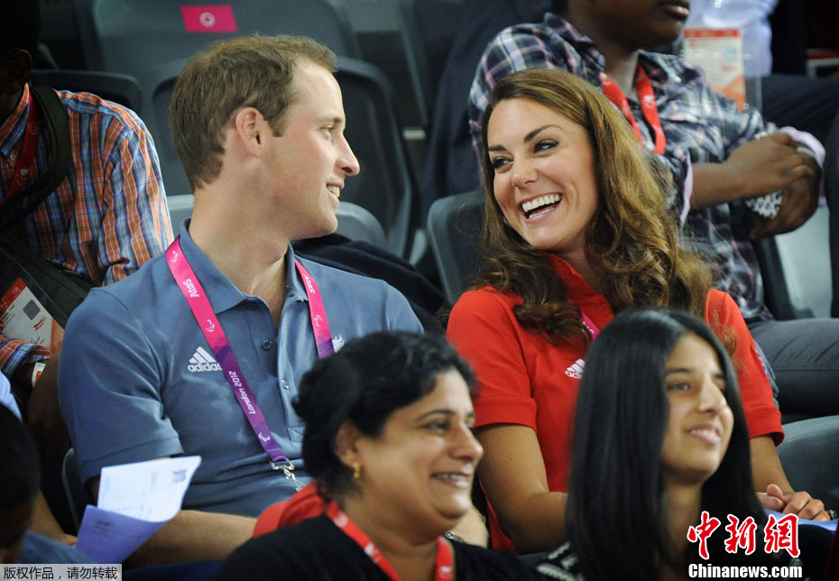 当地时间2012年8月30日,威廉王子携凯特王妃观战残奥会自行车赛,两人有说有笑感情恩爱。