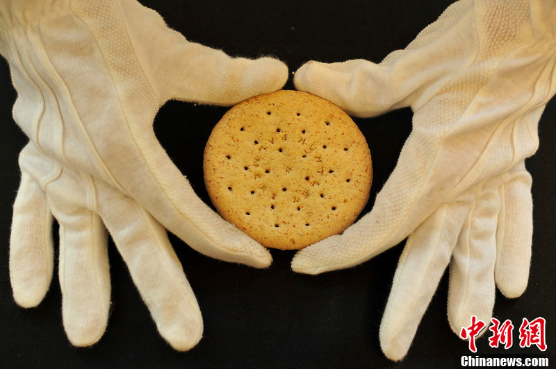 拍卖104年前的饼干:2011年9月,英国伦敦,佳士得拍卖行拍卖一块104年前的饼干。由于它承载着与英国南极探险家欧内斯特·沙克尔顿有关的一段故事,专家估计,拍卖价格有望达到1500英镑(约合2400美元)。图片来源:东方IC 版权作品 请勿转载