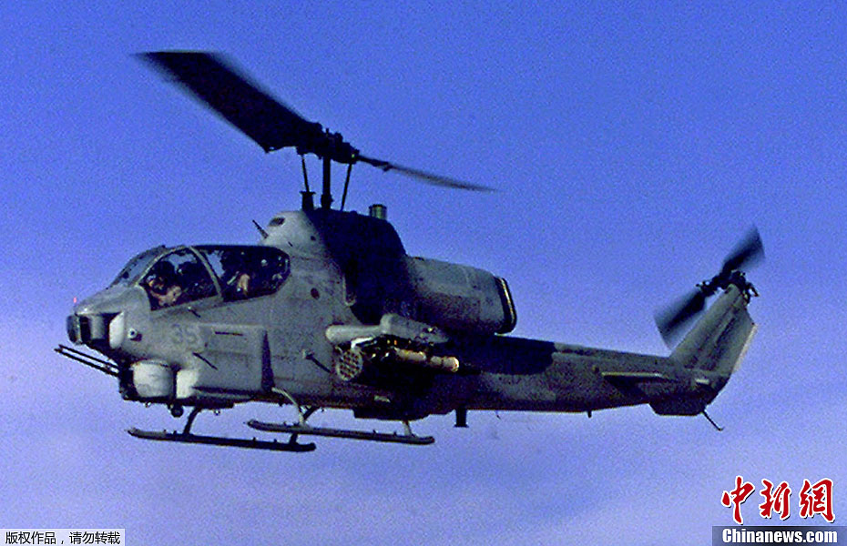 图为2001年12月19日,美国AH-1W“超级眼镜蛇”攻击直升机在进行训练。