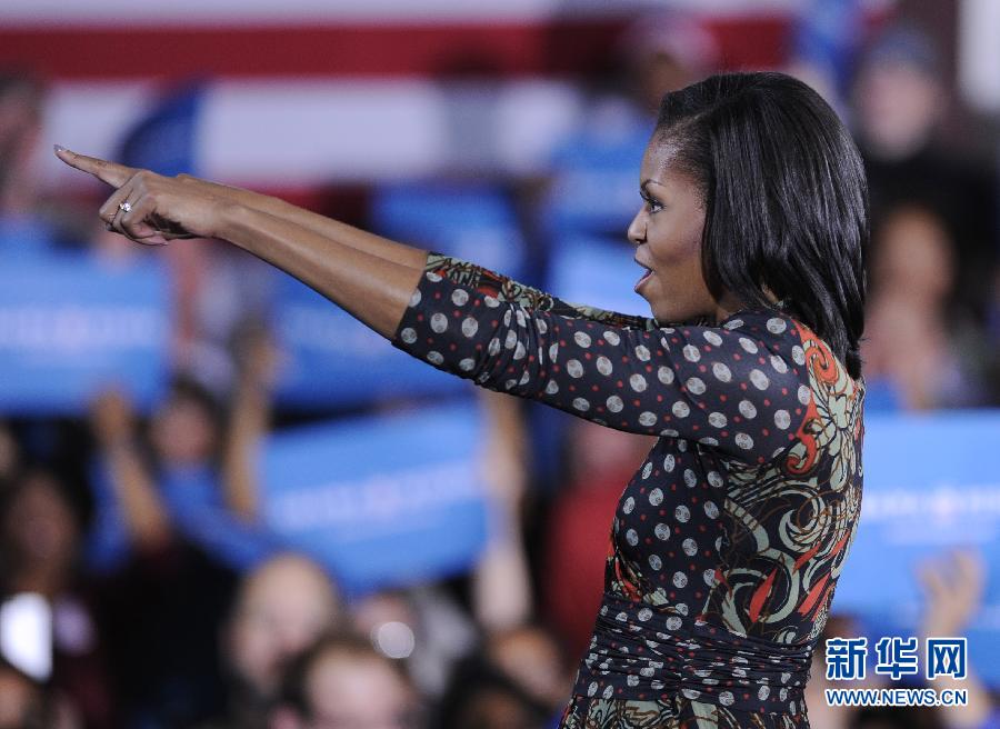 10月9日,在美国弗吉尼亚州劳顿县,美国第一夫人米歇尔·奥巴马举行竞选造势活动,为丈夫奥巴马助选。