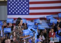 10月9日,在美国弗吉尼亚州劳顿县,美国第一夫人米歇尔·奥巴马举行竞选造势活动,为丈夫奥巴马助选。