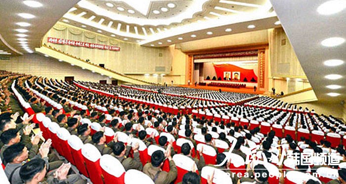 纪念金日成军事综合大学成立60周年报告大会28日在平壤“4 25”文化会馆举行。图片来源:人民网