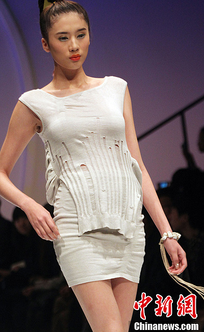 10月30日,北京国际时装周(2013春夏系列)举行华孚杯中国色纺时尚设计大赛决赛,选手在时尚舞台呈现出自己的新鲜创造,设计作品时尚、飘逸、运动、休闲、青春的特质进一步体现。中新社发 钱兴强 摄