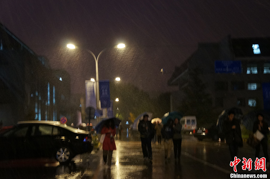11月4日,北京市气象台发布了北京气象史上少见的暴雪蓝色预警。气象台预计,这一轮持续时间超过40小时的雨雪过程,降水量将超过历史同期极值。图为北京中关村地区风雪交加。中新网记者 周维 摄