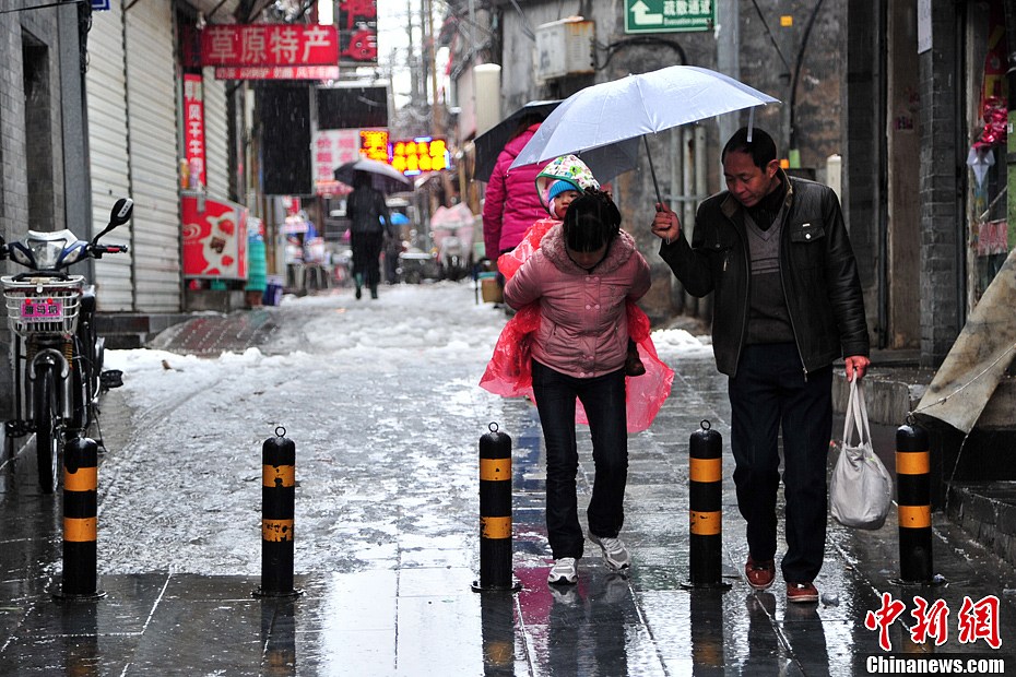 11月4日,北京大街小巷被白雪覆盖,雨雪交加行人出行受阻。3日起,中国北方大部地区遭强冷空气横扫,带来大范围降温雨雪天气。中央气象台11月4日6时发布暴雪橙色预警和寒潮蓝色预警,同时,北京、河北于4日早间相继发布暴雪红色预警,预计这些地区的降雪今天仍将持续。中新网记者 金硕 摄