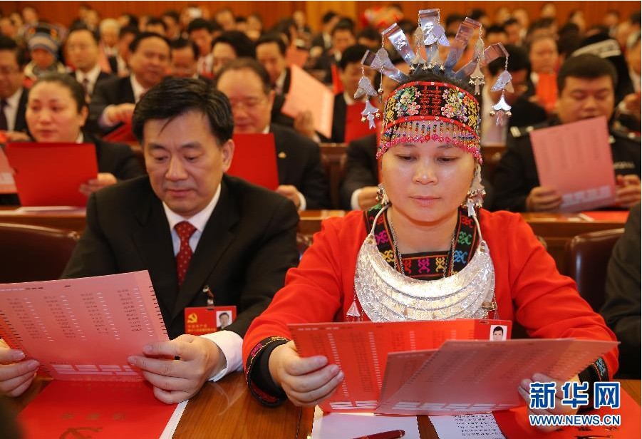 11月14日,中国共产党第十八次全国代表大会闭幕会在北京人民大会堂举行。这是代表准备投票。陈建力 摄 图片来源:新华网