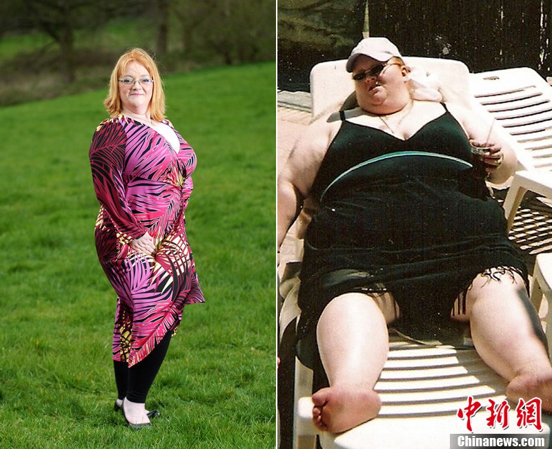 2012年4月10日消息,英国曼彻斯特,Alysson Wilson是两个孩子的妈妈,体重最重时达267公斤,通过手术后成功减掉190公斤赘肉,打破了英国减肥纪录。图为成功减掉190公斤赘肉的Alysson Wilson(左)和减肥前的Alysson Wilson(右)。图片来源:CFP视觉中国