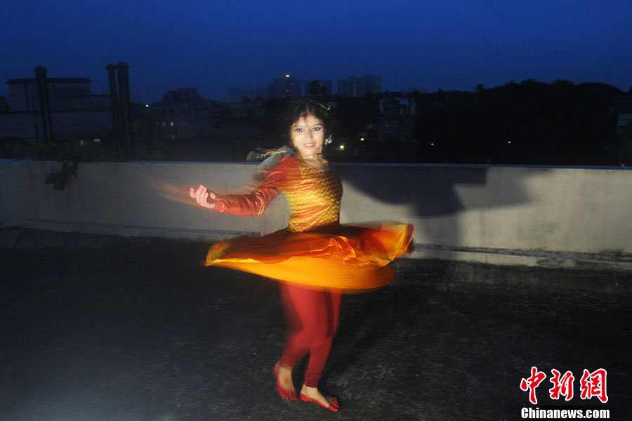 2012年8月23日,印度卡塔克舞者Chirasree Dasgupta创造了卡塔克舞一分钟旋转107圈的吉尼斯世界纪录。图片来源:东方IC 版权作品 请勿转载