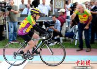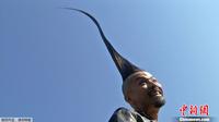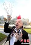 当地时间2012年9月12日,美国纽约,日本时尚设计师 Kazuhiro Watanabe用一罐发胶以及三罐定型剂才打造了这个高达3英尺,8.6英寸(113.2厘米)高的垂直发型,又称莫西干头,并保持了2个小时。