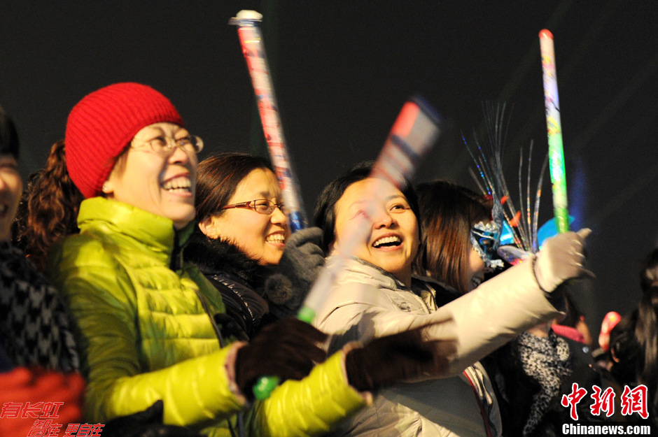 12月24日是西方传统节日圣诞节的前夜,也称平安夜。图为西安兴高采烈的游客们欢度“平安夜”。中新社发 张远 摄