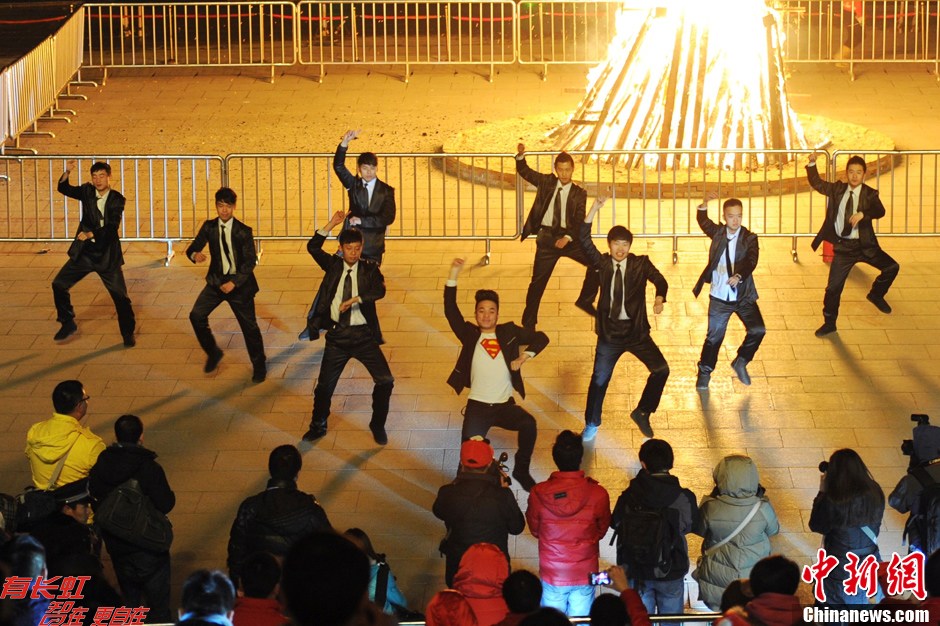 12月24日是西方传统节日圣诞节的前夜,也称平安夜。图为“即兴起舞”的年轻人。中新社发 张远 摄