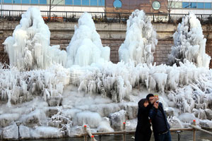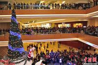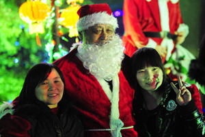沈阳“圣诞老人”逛街庆祝平安夜