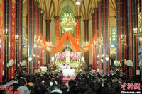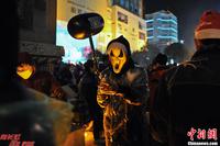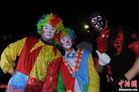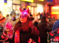 12月24日晚,辽宁省沈阳市,在中街商业街上,超过万人出行逛街、购物等活动来庆祝“洋节”平安夜的到来。各种形象的圣诞老人出现在街头,与市民欢度平安夜。图为“圣诞老人”在逛街。中新社发 于海洋 摄