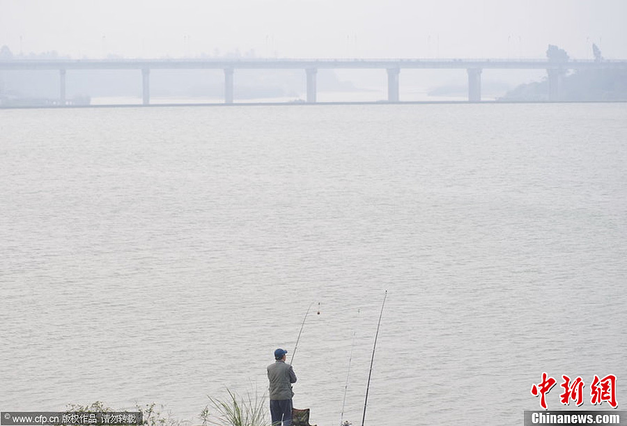 1月13日,雾霾继续在我国大范围弥漫,东北、华北、黄淮、长江中下游及华南地区持续有雾,中央气象台6时继续发布大雾黄色预警,预计雾霾将盘踞中东部地区数日。多地城市陷入严重空气污染。图为1月13日,海南琼海一位游人在雾色迷蒙的万泉河边钓鱼。蒙钟德 摄 图片来源:CFP视觉中国