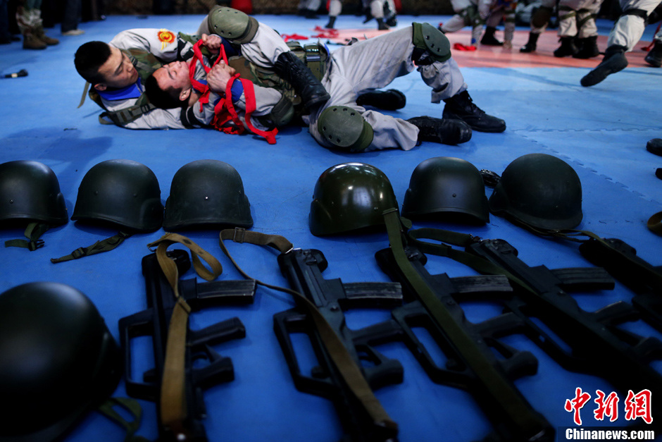 近日,天骄国际安全学院第五期保镖训练营的学员,在外籍教官的带领下,使用道具枪械进行高危情况下保护要员的模拟攻击、搜寻伏击敌人训练。高危情况是指环境复杂,有武装分子伏击的恶劣条件。职业保镖队必须具备对危机处置、射击、协同作战等综合能力。本期共有来自全国10多个城市的45名营员参加培训,他们有退役特种兵、大学生、运动员等,其中有7名女营员。在21天的魔鬼训练营中,学员们接受以色列格斗术、美国FBI读心术、特种侦察技术、特种驾驶、反恐训练及国际商务礼仪等课程。中新社发 富田 摄