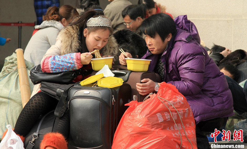 1月26日,2013年全国春运大幕正式拉开,今年春运共40天,高峰日为2月5日至7日,预计铁路客运量2.2亿人次,道路客运量预计31亿人次。图为武汉汉口火车站候车的旅客。中新社发 张畅 摄