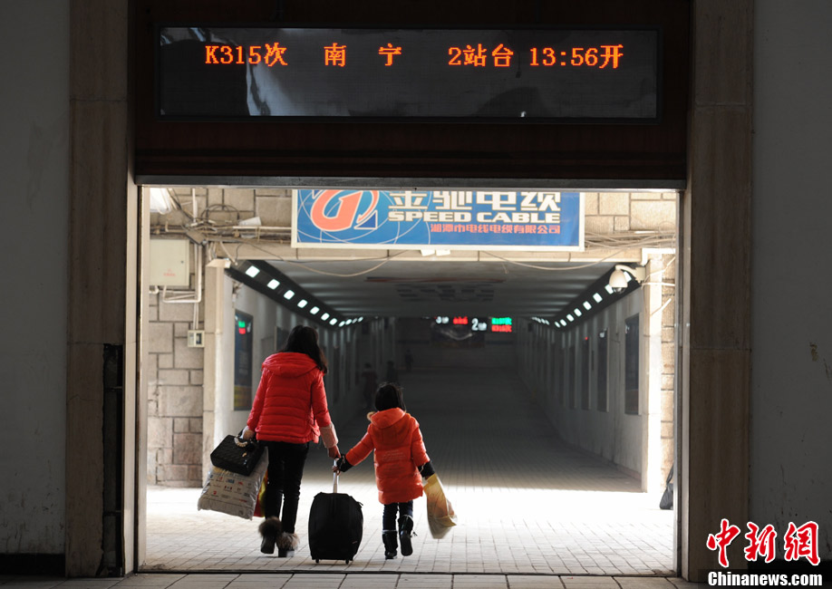 1月26日,2013年春运拉开帷幕,作为全球最大的“人口迁移”,过年回家总能牵动众多中国人的心。图为长沙火车站内,一对母女迫不及待地冲在了乘客最前面,奔向站台。中新社发 杨华峰 摄