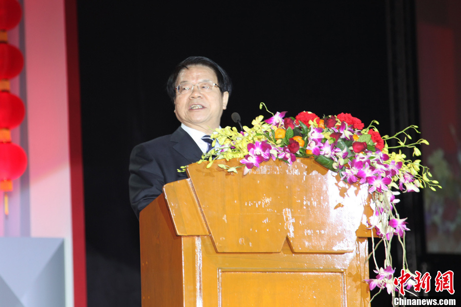 2月7日晚,泰国中央中文电视台与中国云南广播电视台联袂举办的“2013泰国春节联欢晚会”,在曼谷蒙通他尼展览中心皇家宴会大厅隆重开场。图为中国文化部长蔡武出席晚会并致辞。余显伦 摄