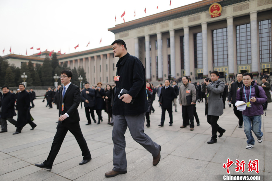 3月2日下午,全国政协十二届一次会议预备会议在北京人民大会堂举行,姚明委员出席会议。中新社发 盛佳鹏 摄