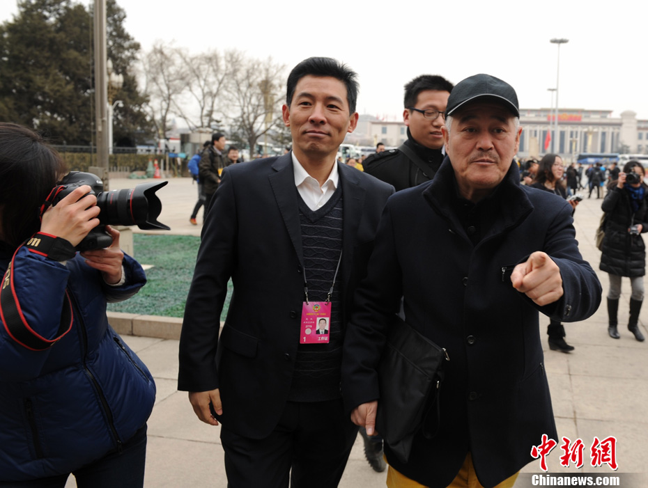 3月2日下午,全国政协十二届一次会议预备会议在北京人民大会堂举行,赵本山被记者追访。中新社发 刘忠俊 摄