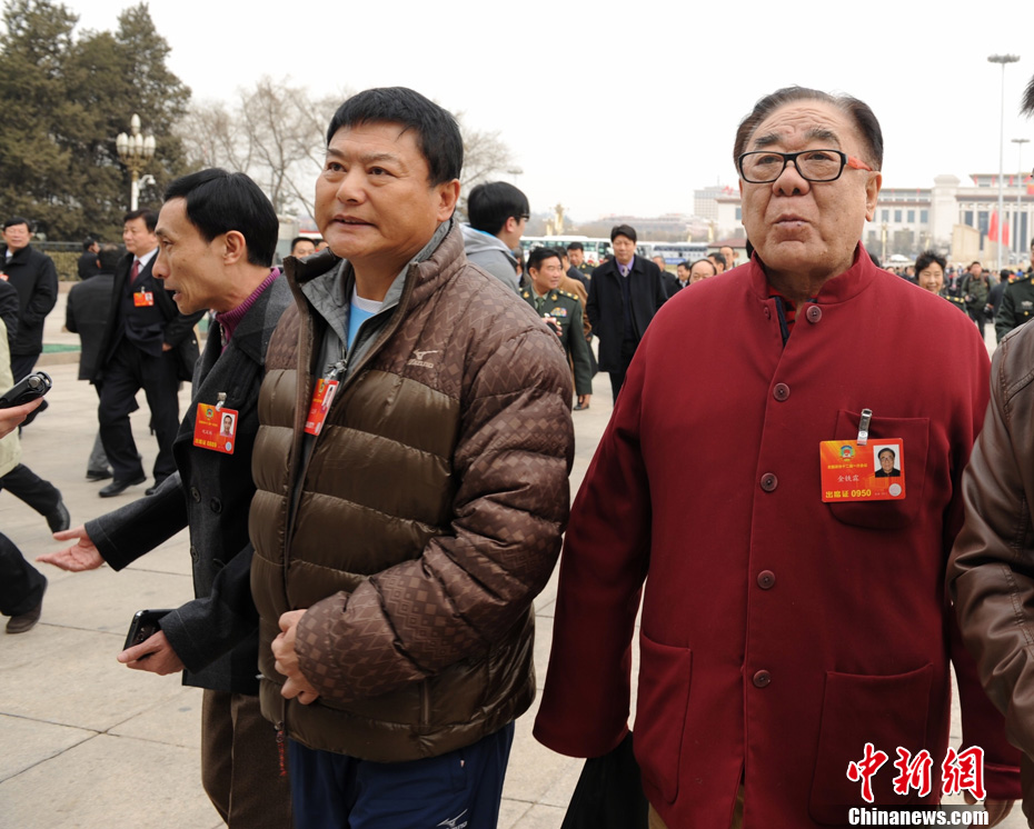 3月2日下午,全国政协十二届一次会议预备会议在北京人民大会堂举行,金铁霖抵达会场。中新社发 刘忠俊 摄