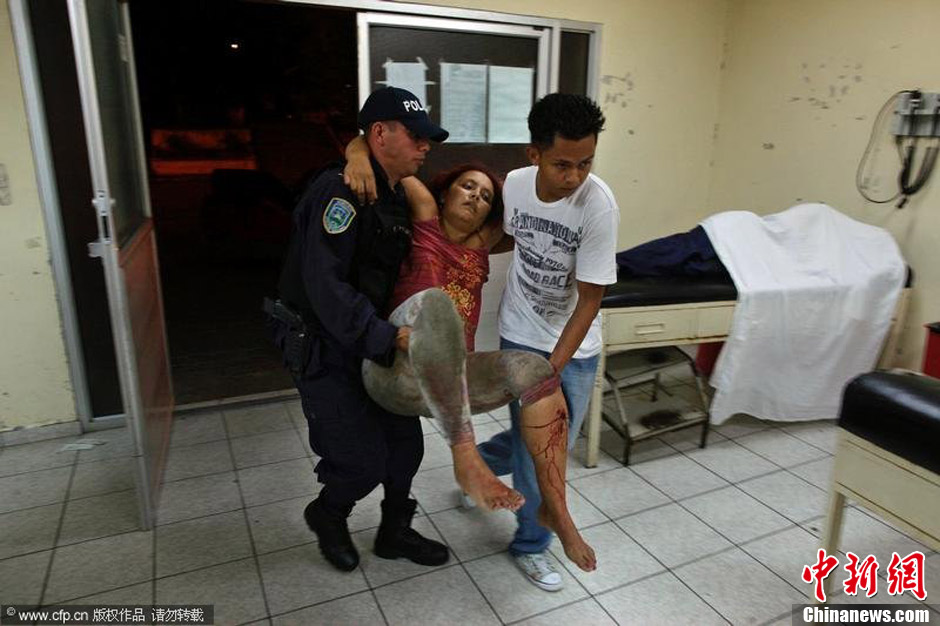 2012年3月11日,一名在台球厅枪击案中受伤的女子被送到洪都拉斯圣佩德罗苏拉的医院治疗。
