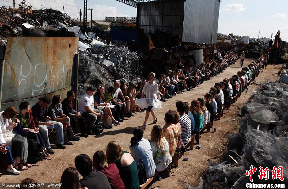 2012年6月16日,在巴西圣保罗时装周,模特在一个废物堆积场里展示Cavalera2012/2013夏季系列时装作品。纳乔·多塞Nacho Doce 摄 图片来源:CFP视觉中国