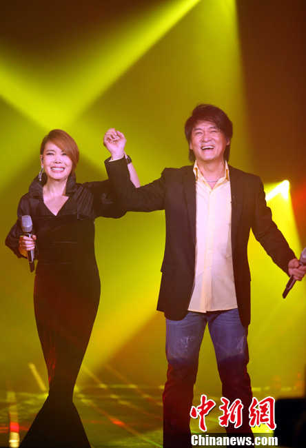 4月12日晚,《我是歌手》总决赛的“帮帮唱”环节中,辛晓琪和周华健搭档演唱经典情歌《当爱已成往事》。当晚,羽泉组合击败其他六位实力强劲的歌手,获得“歌王”称号。中新社发 湖南卫视供图