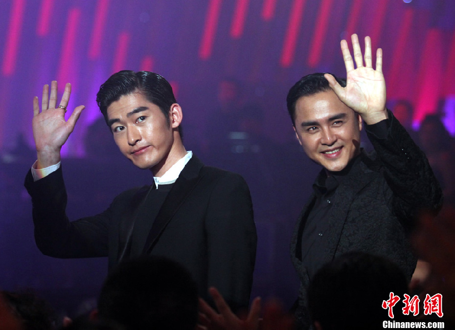 4月12日晚,历经3个月的《我是歌手》落下帷幕,内地组合羽泉击败其他六位实力强劲的歌手,获得“歌王”称号。当晚的总决赛可谓是众星云集,除参赛的各位实力唱将外,周华健、黄贯中、等也纷纷现场献唱。图为张翰和明道现场观看总决赛。湖南卫视供图