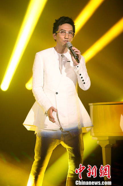 4月12日晚,历经3个月的《我是歌手》落下帷幕,内地组合羽泉击败其他六位实力强劲的歌手,获得“歌王”称号。当晚的总决赛可谓是众星云集,除参赛的各位实力唱将外,周华健、黄贯中、等也纷纷现场献唱。图为林志炫版的《浮夸》别有风情。湖南卫视供图