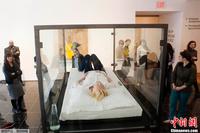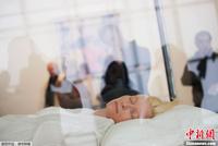 当地时间2013年4月17日,美国纽约,女星蒂尔达·斯文顿在现代艺术博物馆内进行名为《也许》的行为艺术,以睡姿躺在玻璃箱内。
