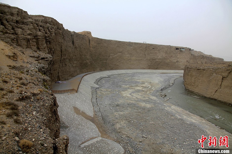4月28日,发源于祈连山的讨赖河流经嘉峪关境内万里长城第一墩时的河谷雄姿。万里长城第一墩因其矗立于讨赖河边50多米高的悬崖之上,故又称讨赖河墩,从河谷远眺,墩台也显得渺小。它是嘉峪关两翼长城最南端的一座墩台,也是明代万里长城最西端的一座墩台。中新社发 孙自法 摄