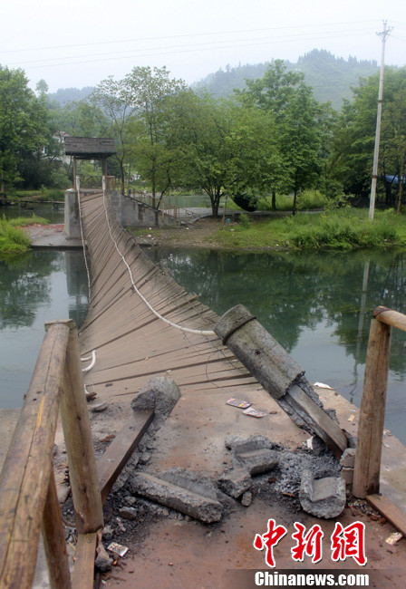 湖南凤凰吊桥发生倾斜事故 受力桥墩断裂