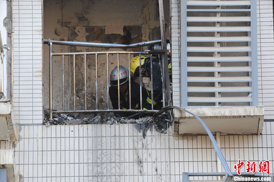 5月2日下午16时05分许,位于西安市经开区北二环东段的名流水晶宫大厦三单元20楼一住户室内突发天然气泄漏爆燃事故。据附近楼内居民介绍,爆炸发生时伴有很大的响声,楼体发生晃动,一度误以为是地震。搜救人员从事故现场救出一人,已被送往医院救治。图为消防人员对爆炸现场进行清理。张远 摄