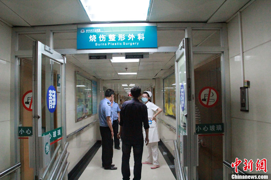 5月2日下午16时05分许,位于西安市经开区北二环东段的名流水晶宫大厦三单元20楼一住户室内突发天然气泄漏爆燃事故。据附近楼内居民介绍,爆炸发生时伴有很大的响声,楼体发生晃动,一度误以为是地震。搜救人员从事故现场救出一人,已被送往医院救治。图为受伤人员已被送往医院进行救治。张远 摄