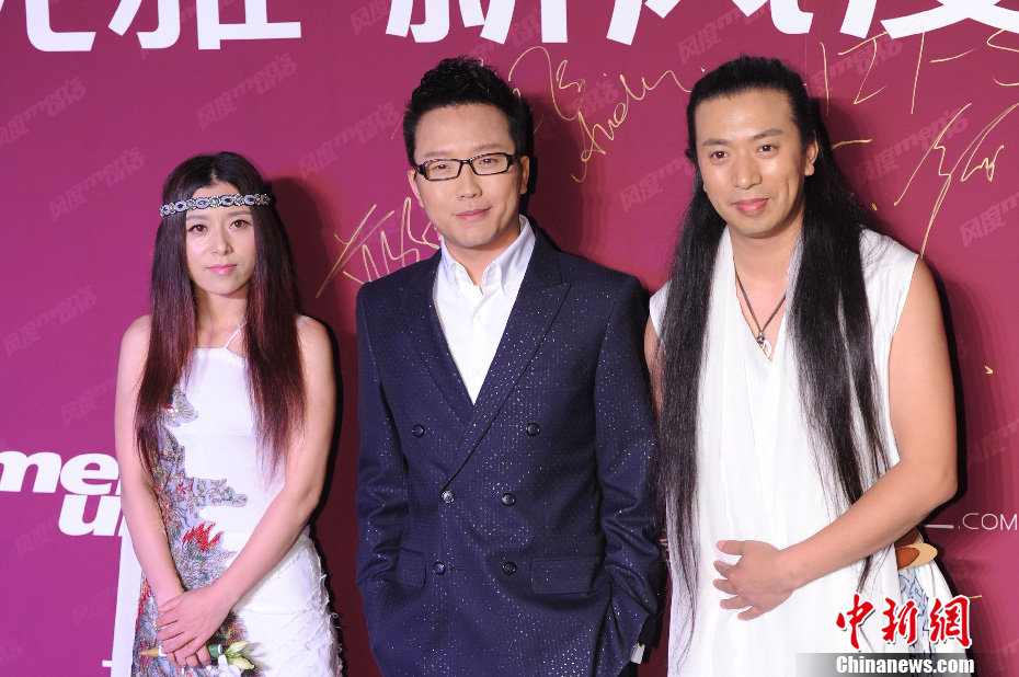 6月6日晚,由《风度men's uno》杂志主办的第二届风度人物颁奖盛典在北京798艺术区盛大举行。此次盛典延续对“风度精神”的不断领悟,赋予新时代都市轻熟男全新风度内涵,从各领域中遴选10位青年才俊成为2013“风度人物”。当晚,钟丽缇、韩庚、邓超、俞灏明、苗圃、江映蓉、金莎、彭于晏、李玉刚等众星亮相颁奖盛典红毯。图为李玉刚(中)。中新社发 李学仕 摄