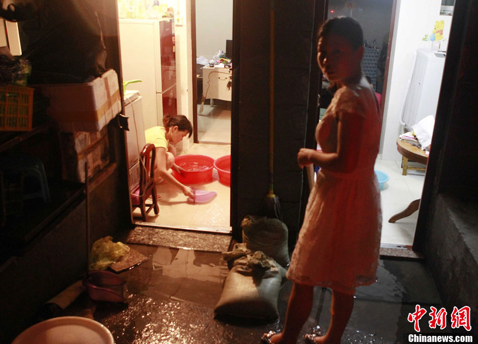 杭州遭暴雨侵袭一片汪洋 沿街住户遭积水倒灌