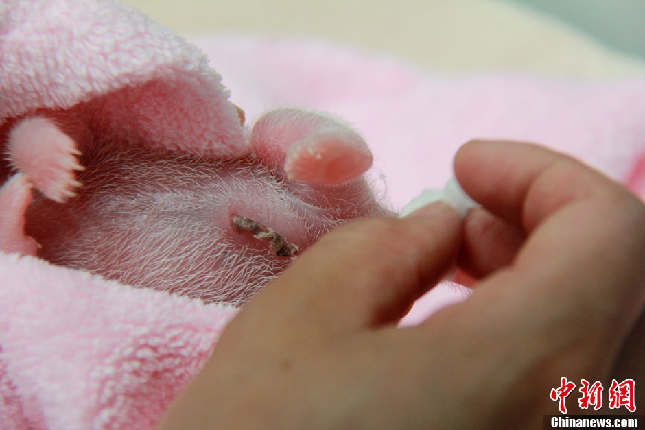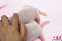 7月23日,被熊猫粉丝们誉为“洁癖公主”的15岁雌性大熊猫“成功”在成都大熊猫繁育研究基地顺利产下了一对大熊猫双胞胎兄弟。经检查,两只宝宝均为雄性,初生体重分别为141克、160.5克。目前母子平安。图为刚出生的熊猫宝宝。中新社发 崔凯 摄