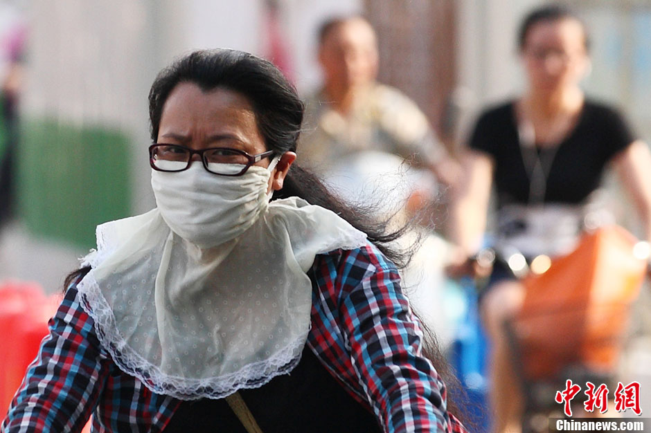 7月30日,南京市民“全副武装”骑车在炙烤的街头经过。当日,中国天气网发布信息,预计7月30日至8月8日,江淮、江南以及重庆等地仍将出现较大范围日最高气温超过35℃的高温天气。其中江南部分地区持续高温日数可达5-8天,部分城市可突破高温历史极值。中新社发 泱波 摄
