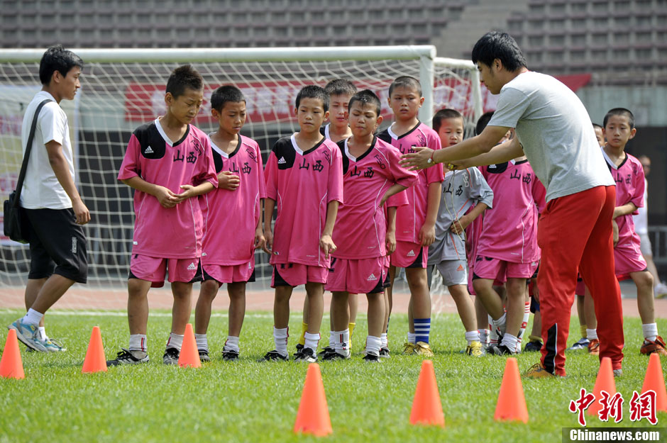 山西小球员烈日下练习足球