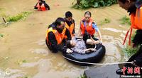 8月17日,湖南永州市江永县公安局人员正在救援被洪水围困的小孩。自8月15日以来,受今年第11号台风“尤特”影响,湖南湘南局部地区普降暴雨,已致永州市蓝山县、江华瑶族自治县、道县、江永县出现洪涝灾情,居民被困。中新社发 黄海 摄