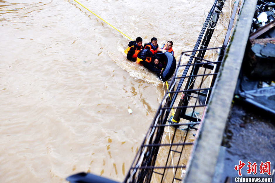 自8月15日以来,受今年第11号台风“尤特”影响,湖南湘南局部地区普降暴雨,已致永州市蓝山县、江华瑶族自治县、道县、江永县出现洪涝灾情,居民被困。17日,江永县公安局救援了30多名被洪水围困的老人和小孩。中新社发 黄海 摄