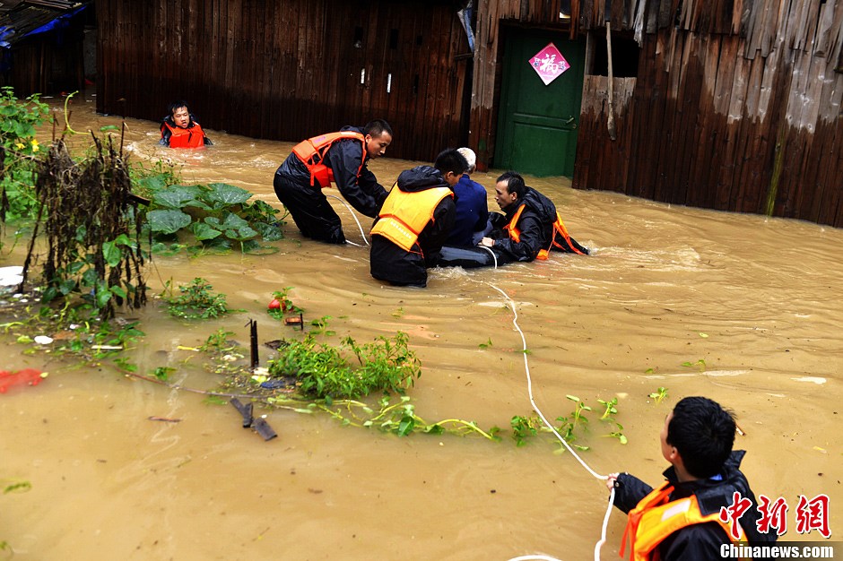 “尤特”致湘南局部暴雨 警方营救被困居民