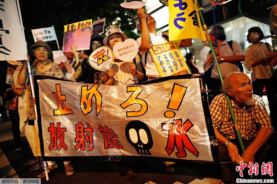 日本民众东电公司前示威 抗议核电站污水泄漏