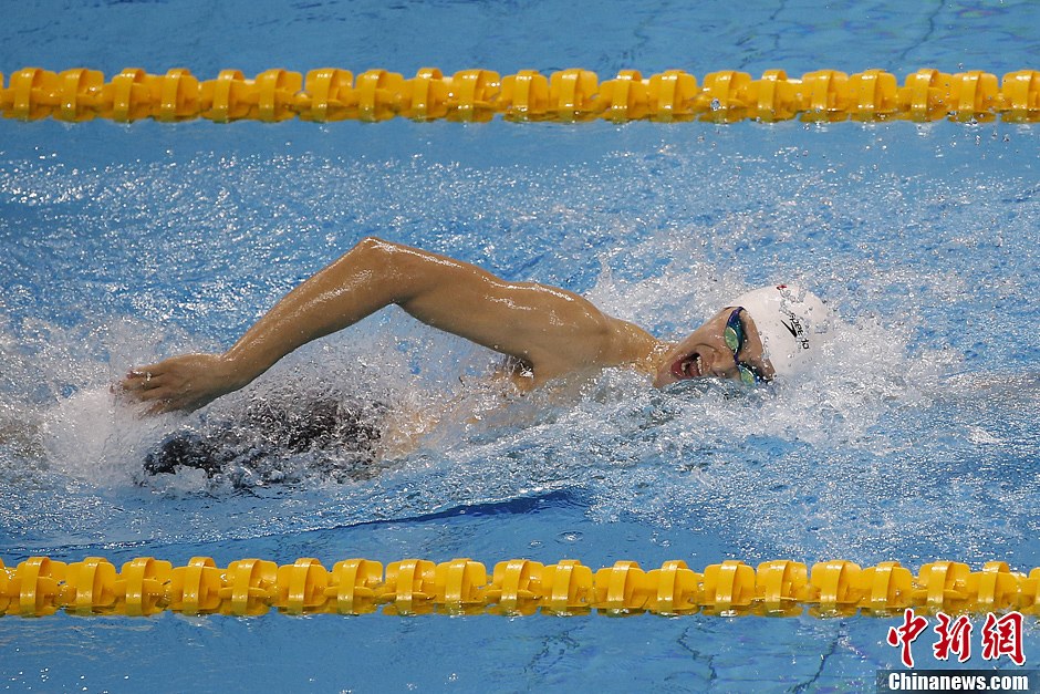 9月5日晚,第十二届全国运动会游泳项目男子200米自由泳预赛,浙江选手孙杨晋级决赛。中新社发 盛佳鹏 摄
