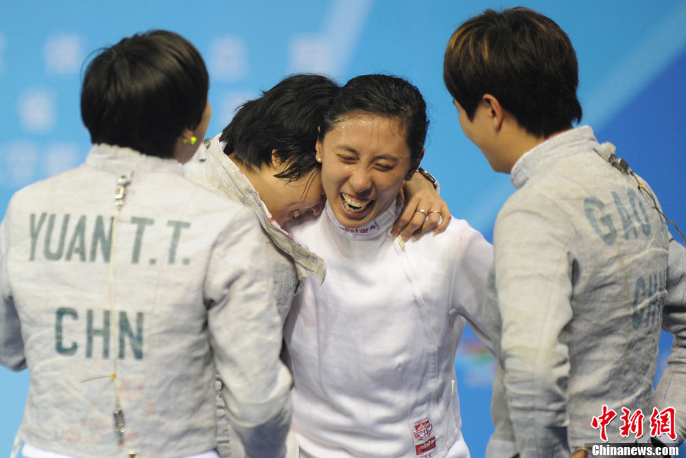 全运会女子佩剑团体决赛 上海队夺冠后相拥庆祝
