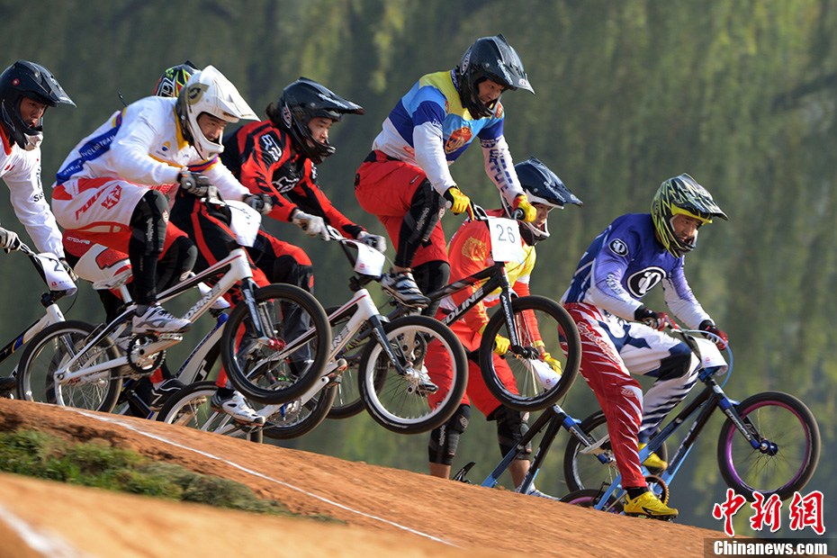 9月8日的沈阳棋盘山,第十二届全运会进行男子小轮车越野赛。贾国荣 摄